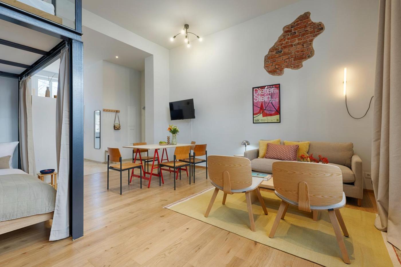 Two-Bedroom Apartment. This apartment includes 2 bedrooms, a kitchen and 1 bathroom with a shower. In the fully equipped kitchen, guests will find a stovetop, a refrigerator, an oven and a toaster. This apartment has a washing machine, a coffee machine, a flat-screen TV and city views. The unit has 4 beds.