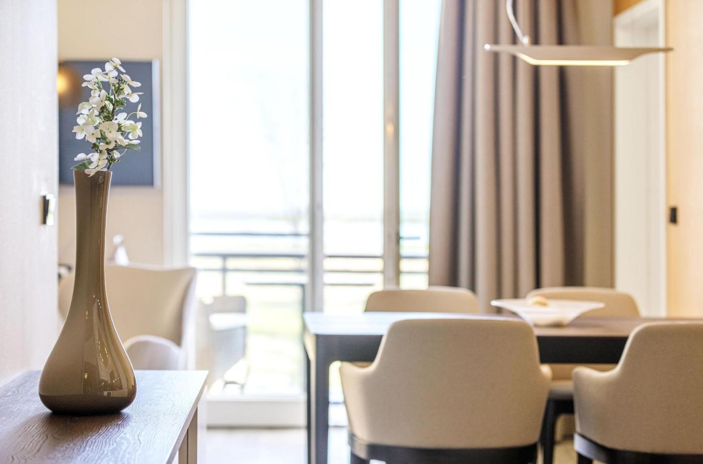 The spacious apartment with a balcony and lake views features 2 bedrooms, a living room, a TV, an equipped kitchen with a dishwasher and an oven, and 2 bathrooms with a bath. Towels and bed linen are provided in the apartment. The property has an outdoor dining area.