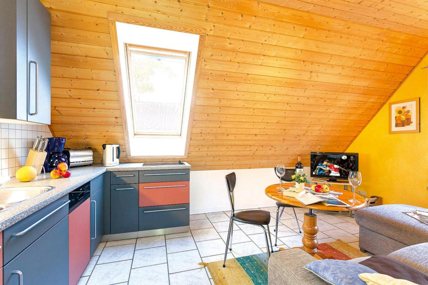 Apartment. This apartment comprises 1 living room, 1 separate bedroom and 1 bathroom with a shower. Guests will find a stovetop, a refrigerator, a dishwasher and a microwave in the kitchen. The apartment also provides guests with a barbecue. The apartment provides a coffee machine, a high chair for children and heating. The unit offers 2 beds.